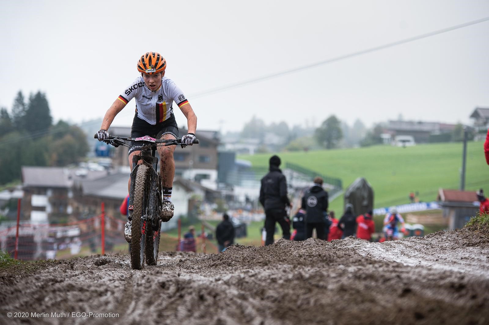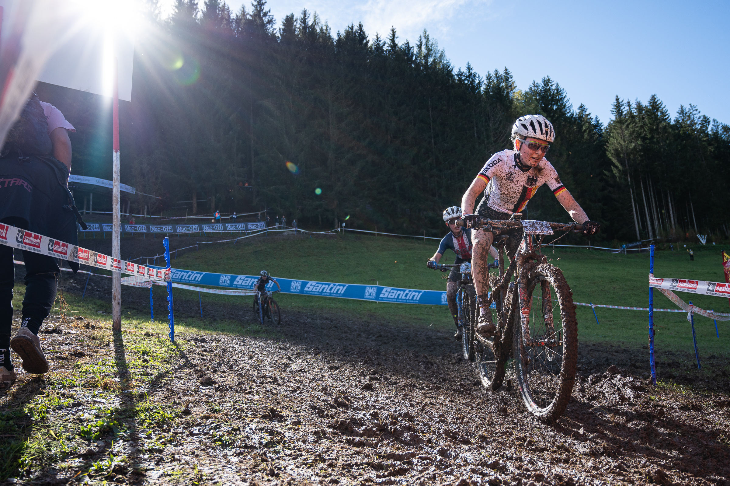 Als erstes gingen die Juniorinnen am Donnerstag auf die Strecke. Sie konnten noch nicht von Erkenntnissen aus vorherigen Rennen zu Linienwahl oder Material profitieren. Kaya Pfau gehört noch dem jüngeren Jahrgang bei den Juniorinnen an. Darum hatte sie noch wenig Weltranglistenpunkte und musste aus der letzten Startreihe der knapp 50 weltbesten Juniorinnen starten. Schon innerhalb des Startloops habt sich Kaya auf Platz 22 vorgearbeitet. Am Renntag kam die Sonne hervor. Was zuerst jeden freute, den Schlamm auf der Strecke aber in eine zähe Masse verwandelte.